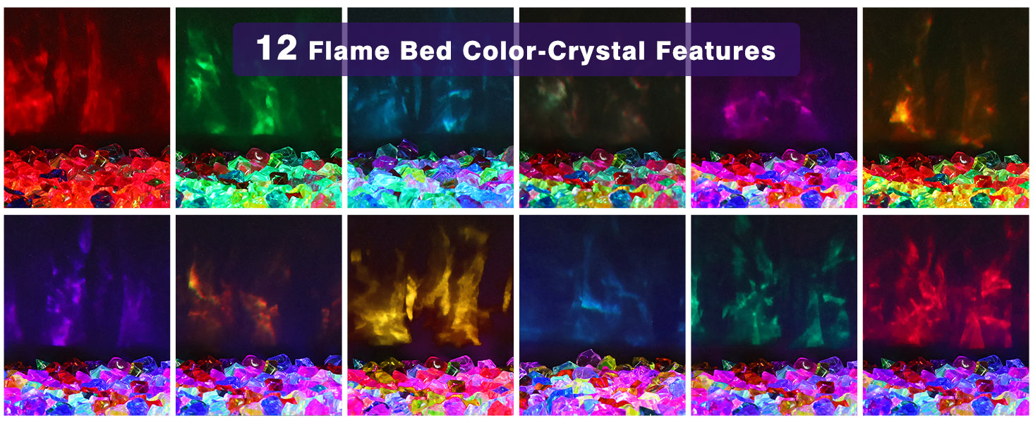 • 💎The Appearance of Glowing Embers - Add the multicolor crystals at the base of your electric fireplace to add more vibrant, realistic color that simulates the glowing embers of a real wood fire. Create a unique look to suit your style by mixing or layering crystals.